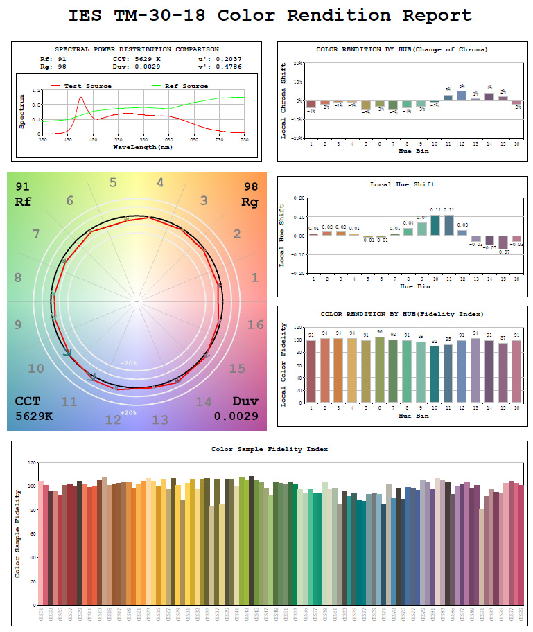 Istället för endast 8st färger mäter man istället ett snitt mot 99 färger. Detta ger ett mer exakt resultat och man kan tydligare se vilka färger en diod återger bra eller dåligt.