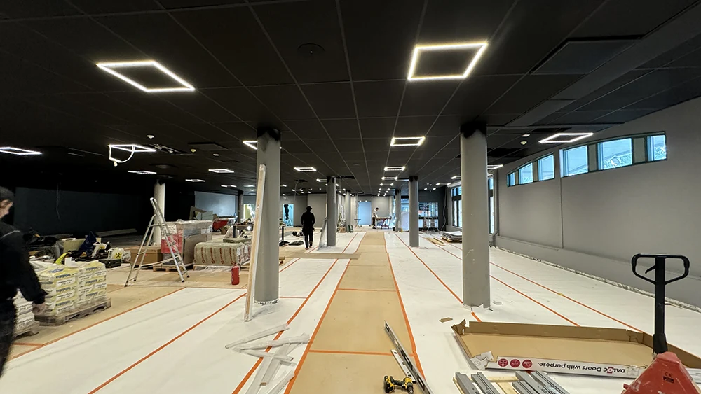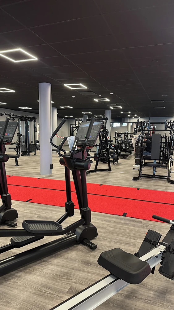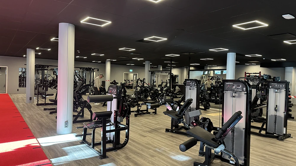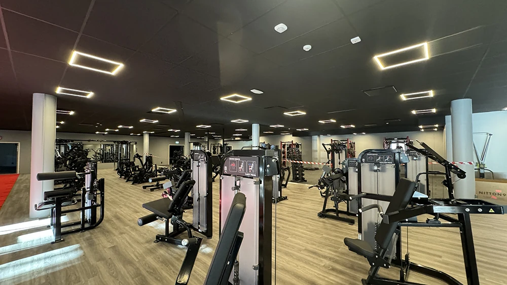 När Friskis & Svettis skulle etablera sitt nya gym i centrala Skellefteå kontaktades Designlight av Afry för att skapa en belysningslösning som mötte både funktionella och estetiska krav. Med ett svart undertak som utgångspunkt krävdes noggrann planering för att säkerställa en optimal ljusfördelning och enhetlig design.