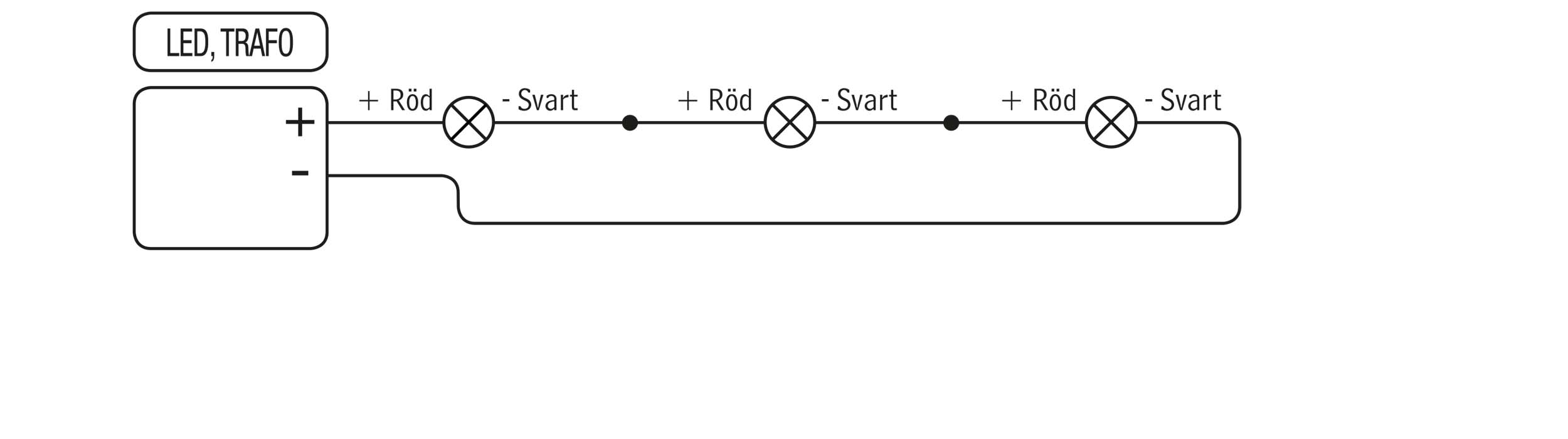 Lampor som skall matas med konstantspänning (ex 12 eller 24V) skall vanligtvis parallellkopplas. Notera att det finns belysning för både likström (DC) och växelström (AC) där likström är polkänslig.