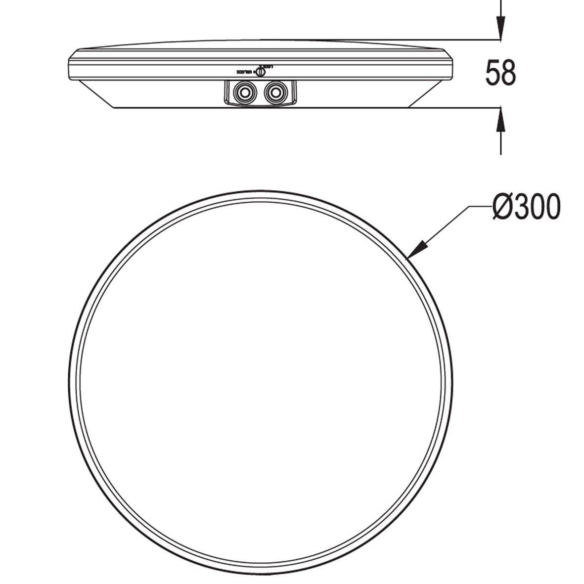 En LED-plafond som är utformad för enkel och snabb installation och även kompatibel för montering i takdosa (70mm mellan skruvhål). Armaturen har in och utgångar både bakifrån och från sidorna vilket gör att den kan vidarekopplas och även monteras med utanpåliggande kabel.