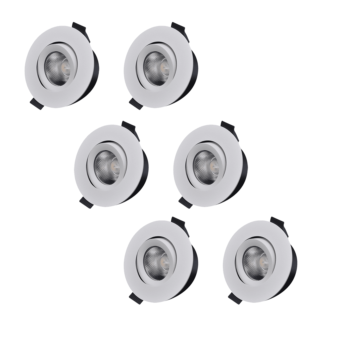 Prisvärt paket med 6st downlights av typen D-007 i vitt utförande. Varje armatur har ett eget drivdon som är dimbart med både fram och bakkantsdimmer.