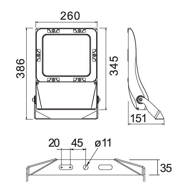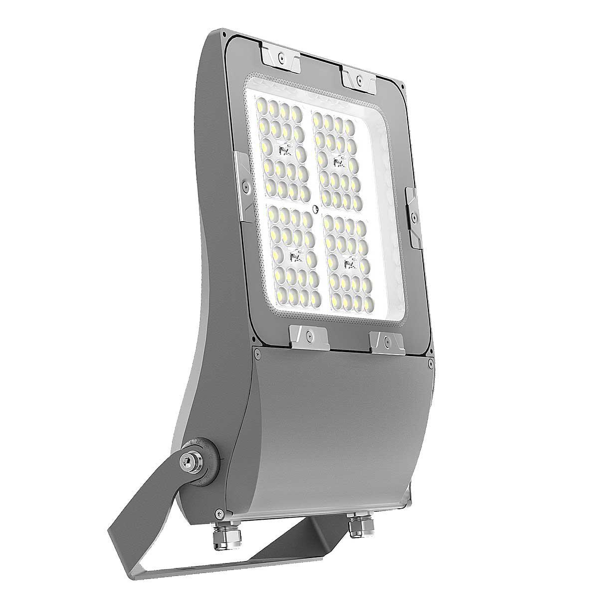Elly 100W är en kraftfull och hållbar strålkastare som levererar upp till 17 200 lumen i neutralvit ljustemperatur (4000 K). Med en asymmetrisk spridningsvinkel på 130° x 50° är armaturen särskilt anpassad för effektiv och riktad belysning av större utomhusytor såsom parkeringsplatser, fasader, logistikytor och industriområden.