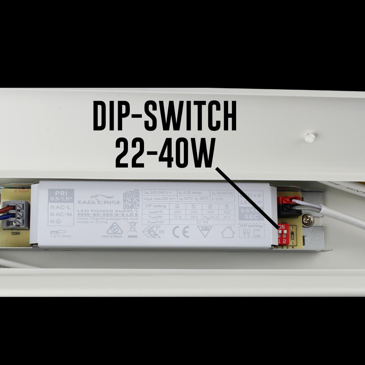 Effekten ställs enkelt in via dip-switch i fyra nivåer: