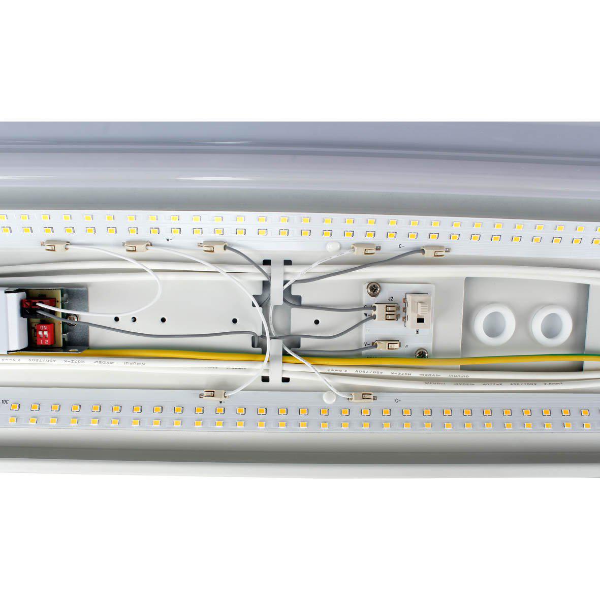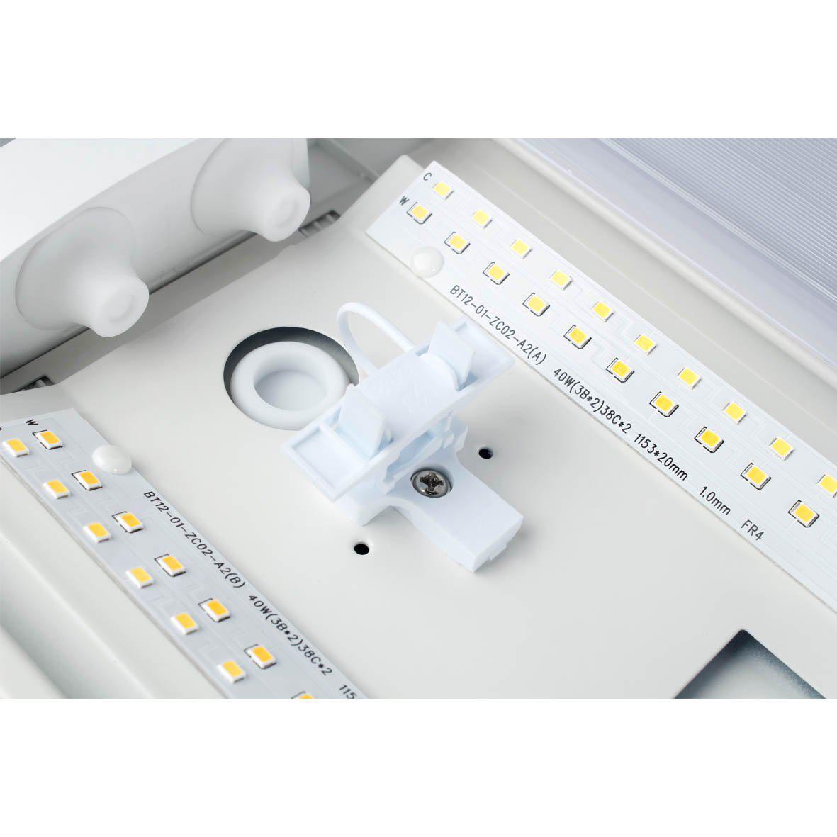 Ljustemperaturen kan ställas mellan 3000 K och 4000 K, och effekten justeras enkelt via dip-switch i fyra steg: 22 / 28 / 33 / 40 W. Detta gör det möjligt att anpassa både ljusnivå och energiförbrukning efter lokalens behov.