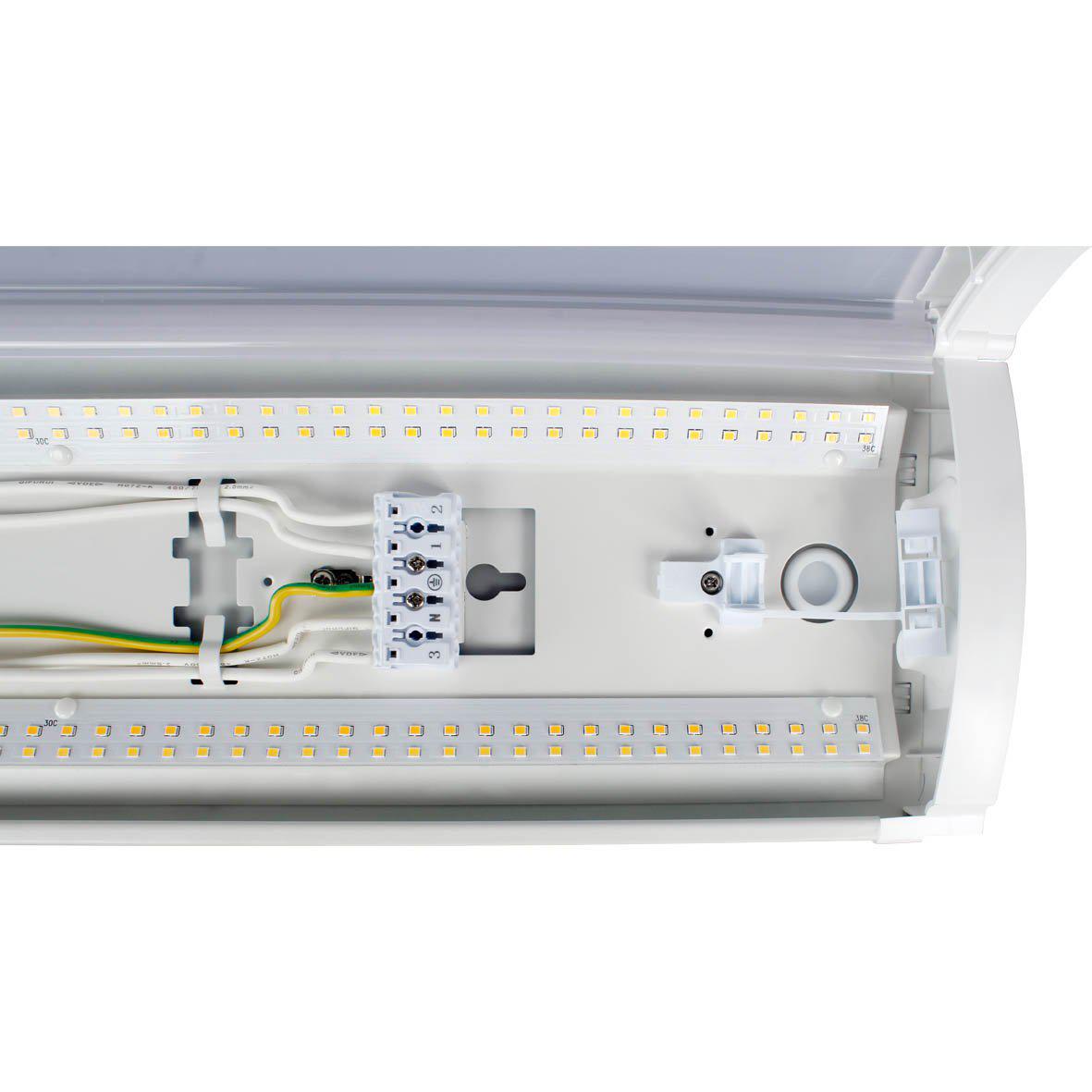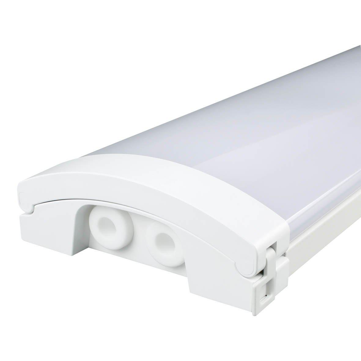 Den mjukt rundade profilen ger armaturen ett modernt och diskret uttryck. Den opala, diffuserande kupan säkerställer kontrollerad avbländning och ett jämnt ljusflöde över ytan, vilket skapar en behaglig ljusmiljö i exempelvis korridorer, lager, källare och förråd.