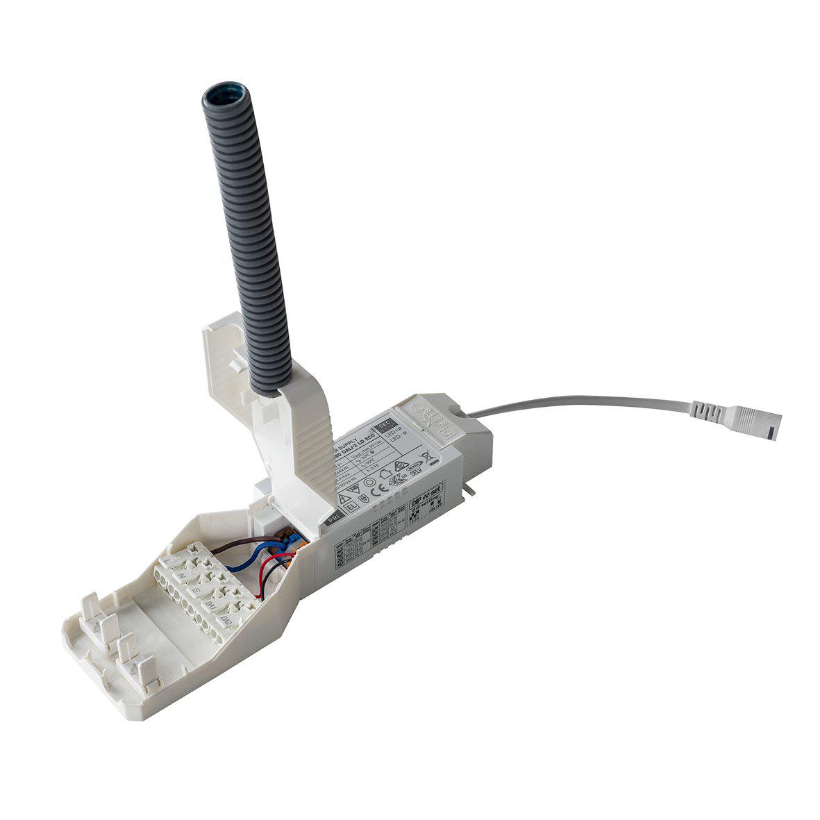 Panelen som är endast 8 mm och monteras enkelt i undertakets bärverk (595×595). Armaturen har drivdon för styrning med DALI (se produkfiler för datablad). Kopplingsplint 5×2,5mm², Ra 80, 3000K.